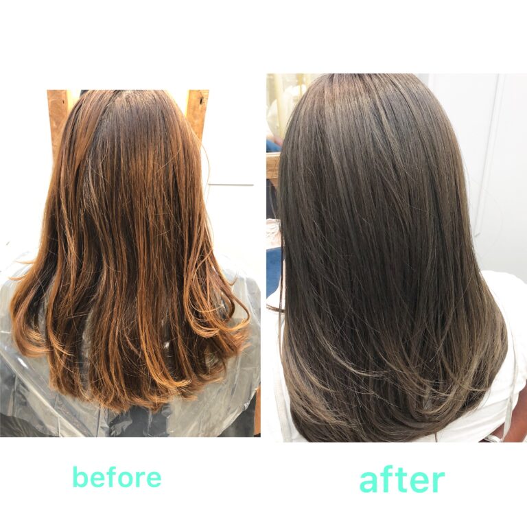 髪質改善GLTカラーで退色して出てきた赤みをシャットアウトしつつ艶と柔らかさを補充させていただきました。