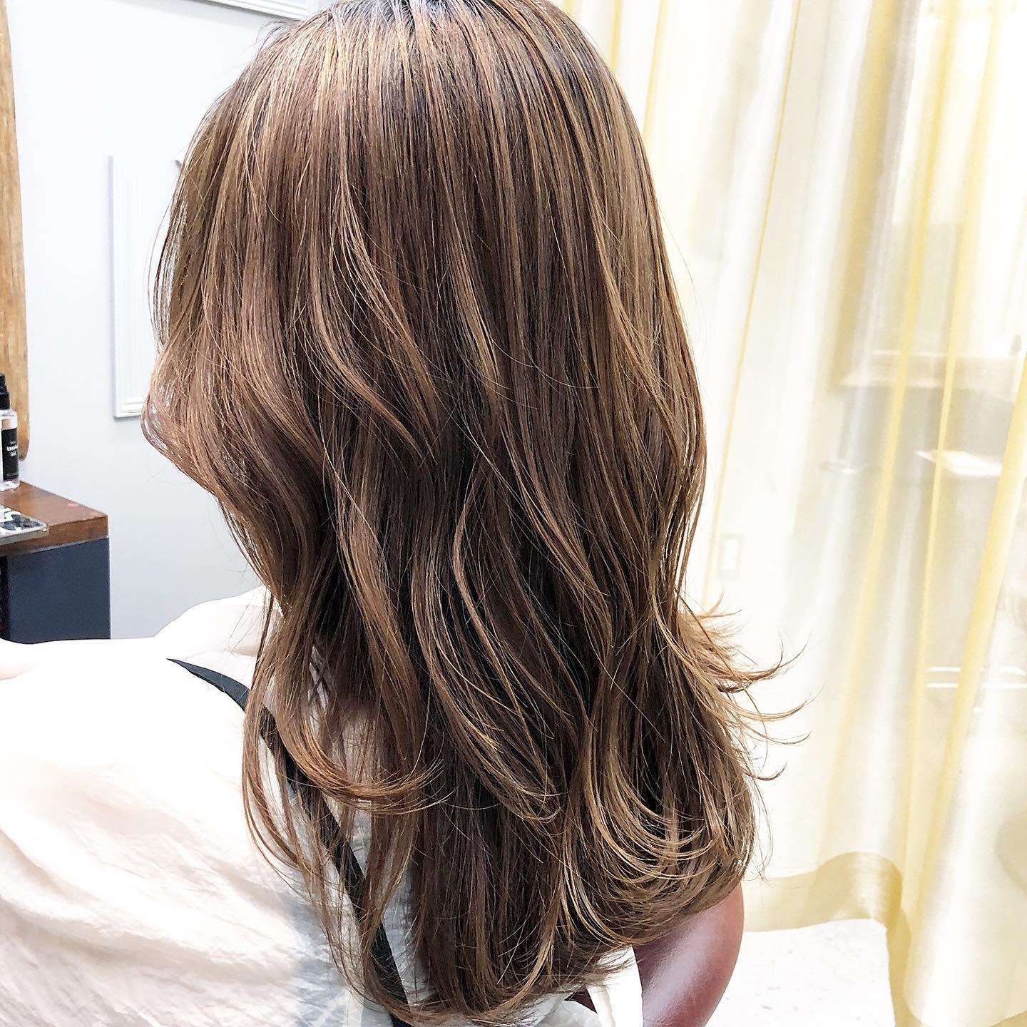 [表面縮毛矯正+髪質改善カラー]髪質改善 コテ巻き 艶巻き仕上げ