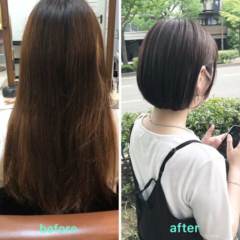 このぐらいの長さまでバッサリカットする事で髪の毛の傷みはある程度リセット出来ます。